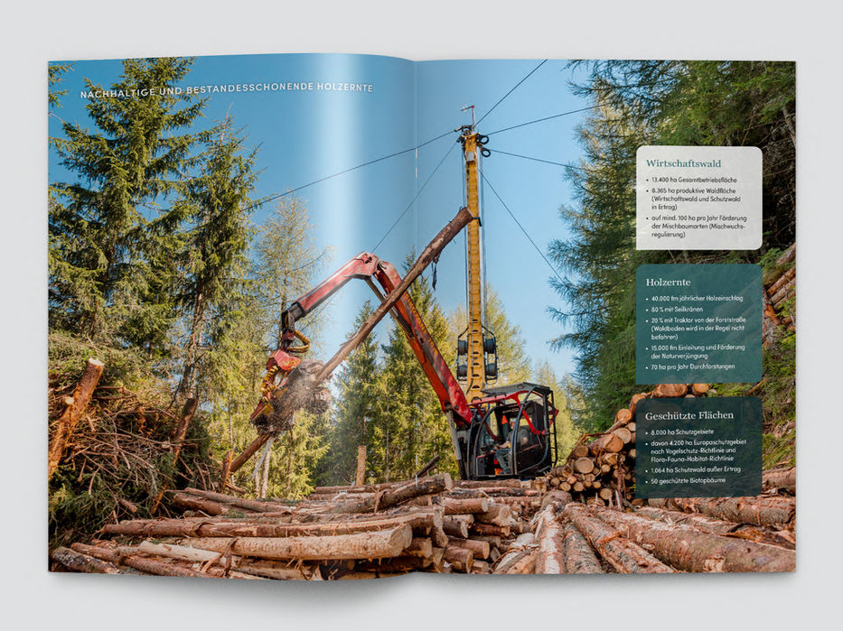 Das Aufforstungsunternehmen steht für eine verantwortungsvolle, aktive und nachhaltige Bewirtschaftung des Waldes. Nur so kann der Wald eine Klimaschutzfunktion erfüllen. In einer 40-seitigen Informations-Broschüre werden diese Themen aufgegriffen und vor allem die Menschen im Betrieb vor den Vorhang geholt, die sich in ihrer täglichen Arbeit für Nachhaltigkeit und Biodiversität auf den Flächen des Forsts Kalwang engagieren.